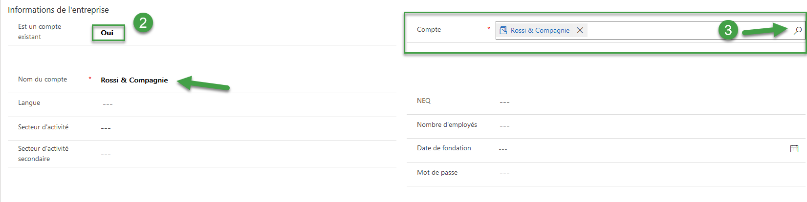 - If a new account must be created, manually fill the information.